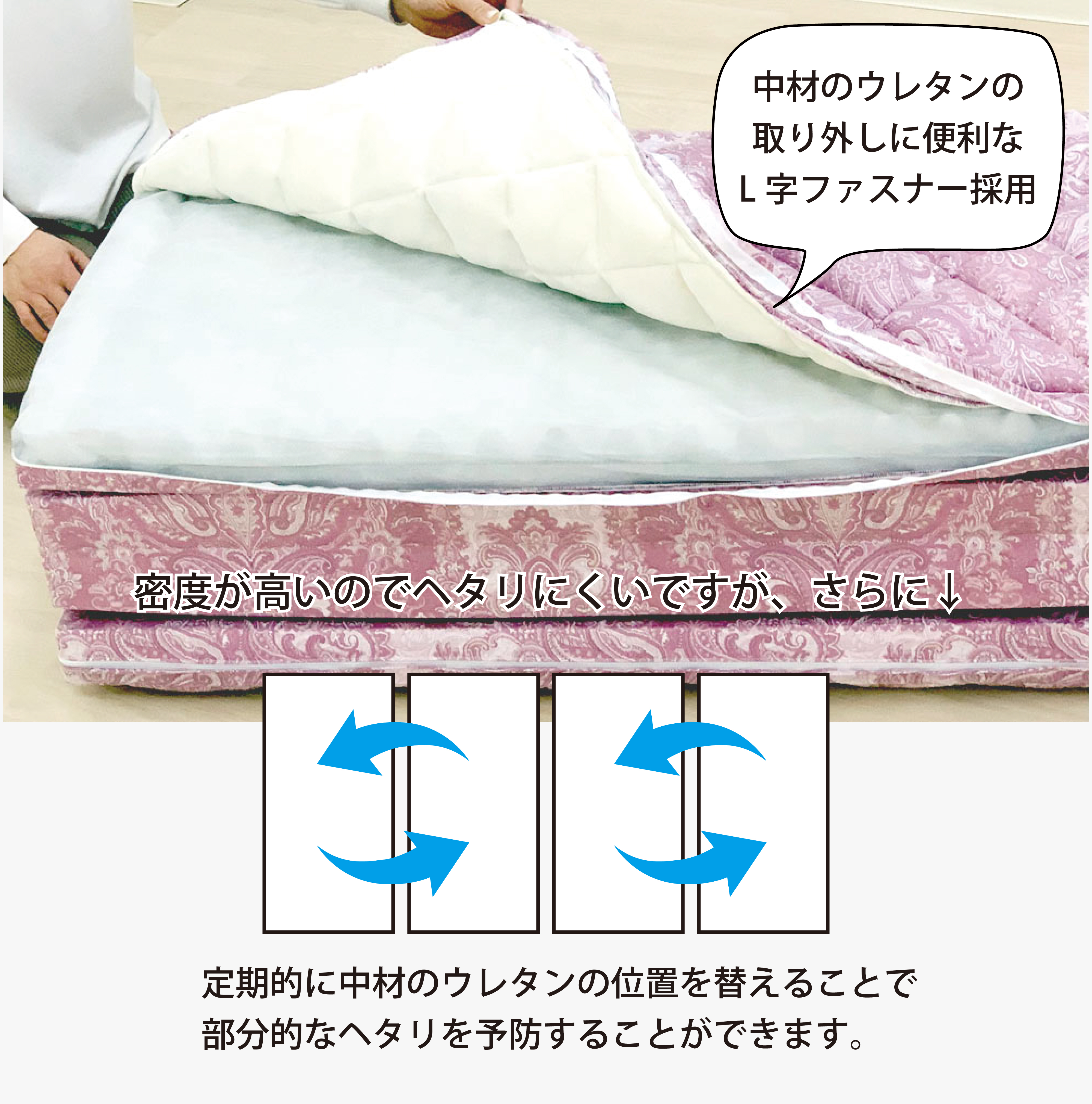 ウレタンの位置を定期的に入れ替える事でウレタンの部分的なヘタリを抑える事ができます。