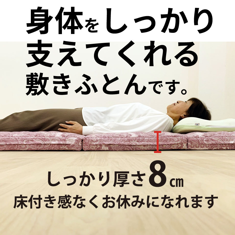 新潟の自社工場で熟練の職人が一つ一つ丁寧に製造しており、品質には自信があります。あなたの大切な睡眠を、四つ折り敷きふとんロイヤル2 ベリーハードでより良いものに変えてみませんか!