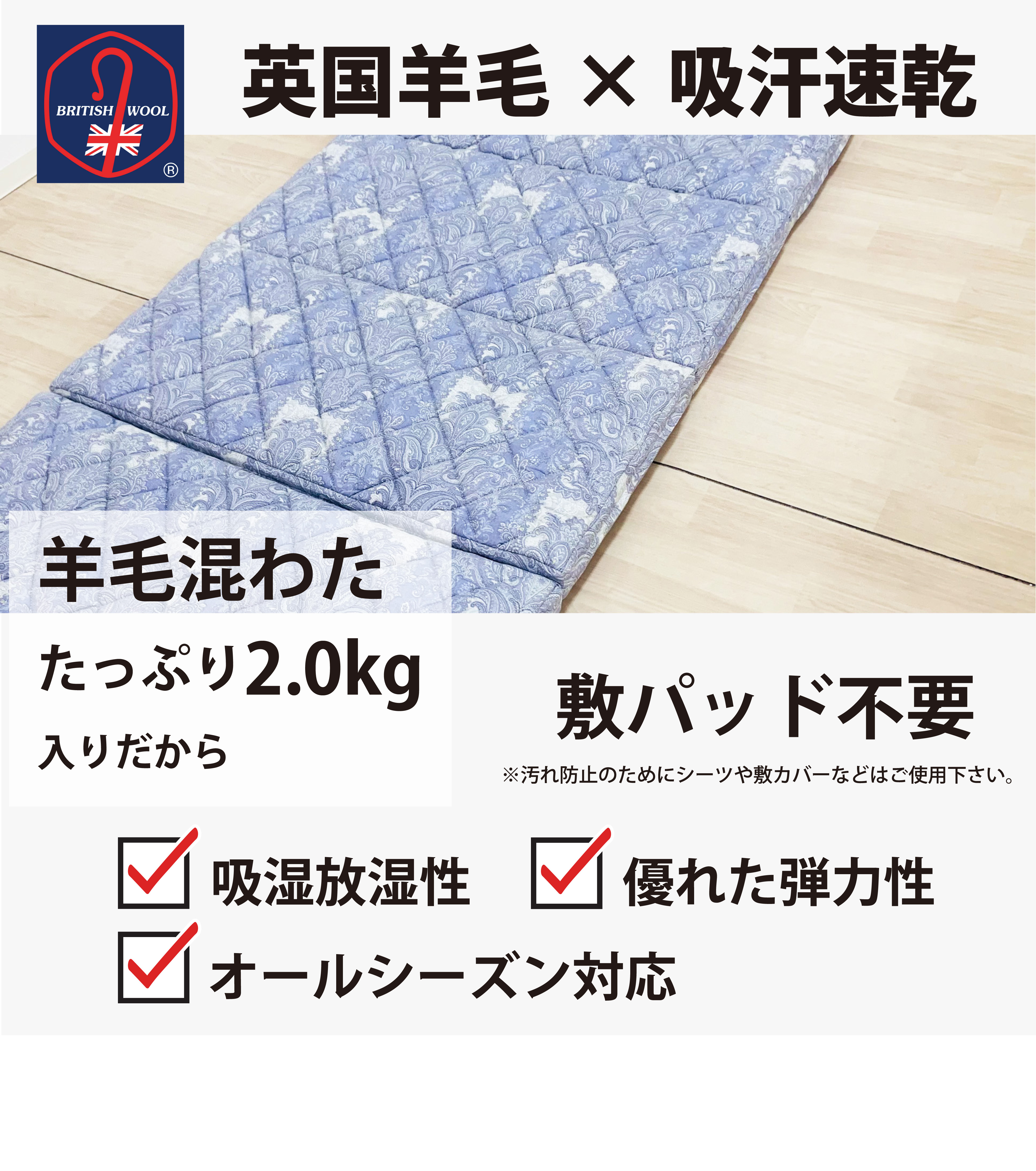 ・上層 羊毛50% ポリエステル (吸汗速乾性)50% 2.0kg